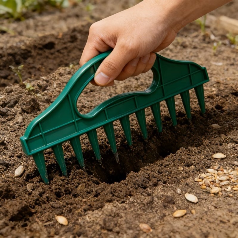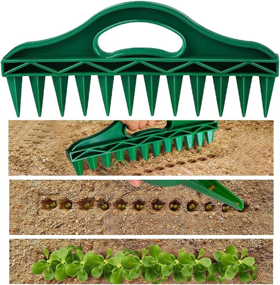 Progettato per posizionare con precisione semi e piante, questo strumento aiuta a creare fori puliti e uniformemente distanziati per semi, piantine e bulbi in aiuole o vasi.
