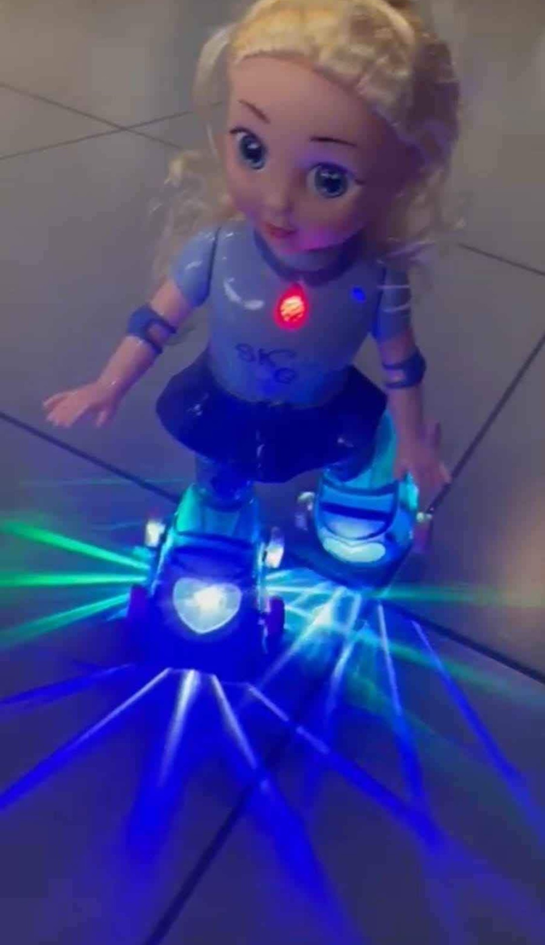 TRIKSY si muove automaticamente sui suoi pattini rosa, si illumina con luci LED e cambia direzione quando incontra un ostacolo.