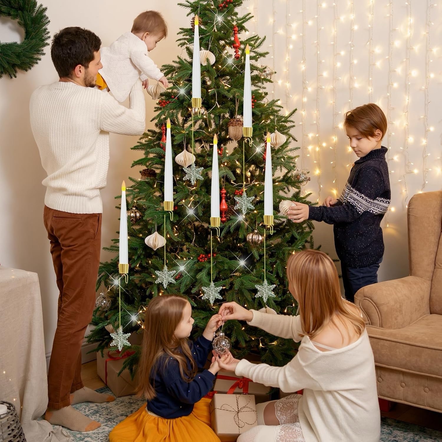 Le candele LUSHFLAME diffondono una luce bianca calda e soffusa che valorizza perfettamente le tue decorazioni natalizie. Il loro design raffinato, abbinato a ganci dorati e ornamenti in cristallo, dona un tocco di lusso al tuo albero, riempiendo la casa di fascino ed eleganza festiva.