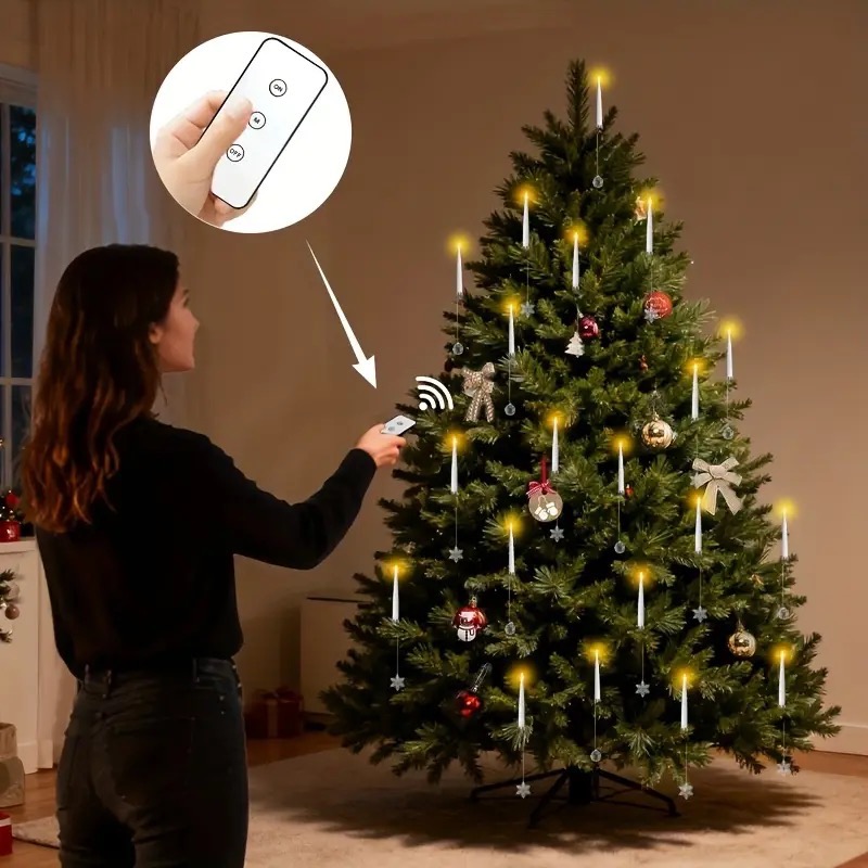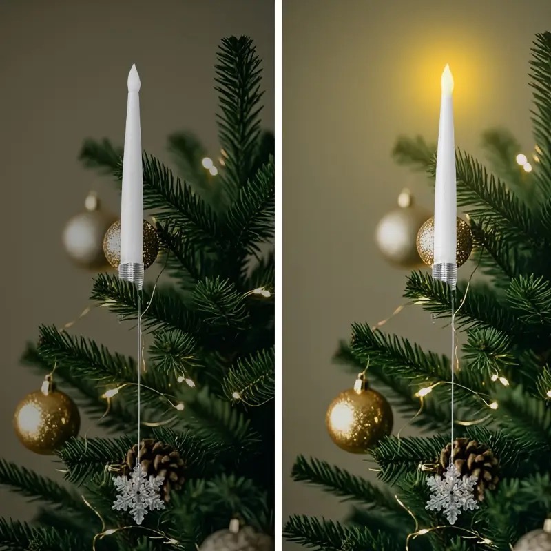 Le candele LUSHFLAME diffondono una luce bianca calda e soffusa che valorizza perfettamente le tue decorazioni natalizie. Il loro design raffinato, abbinato a ganci dorati e ornamenti in cristallo, dona un tocco di lusso al tuo albero, riempiendo la casa di fascino ed eleganza festiva.