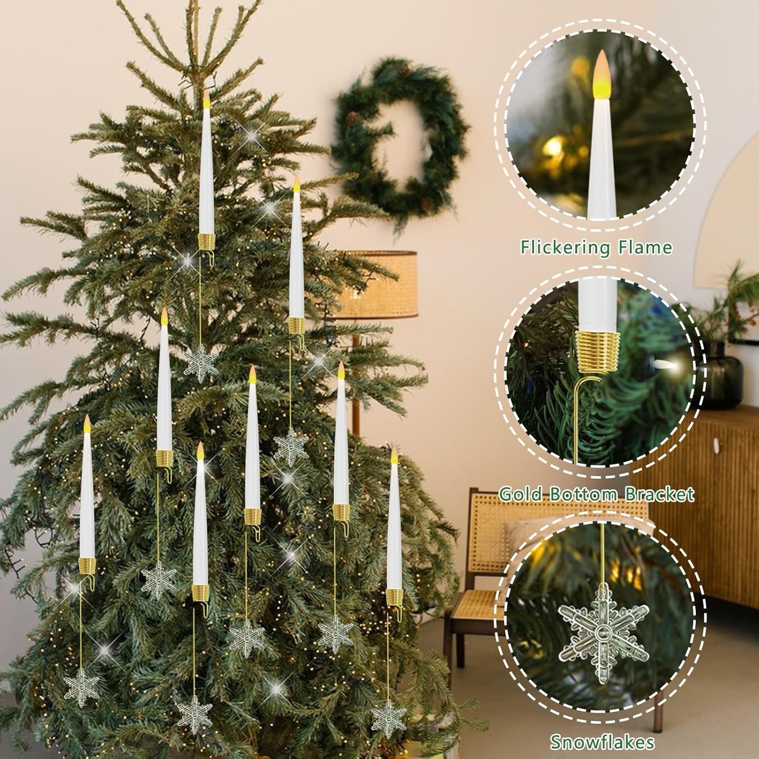 Ogni candela può essere facilmente fissata grazie ai ganci dorati inclusi. Il pratico telecomando ti permette di accenderle e spegnerle o impostare il timer di 6 ore per un funzionamento automatico, garantendo il massimo della comodità durante tutte le festività.