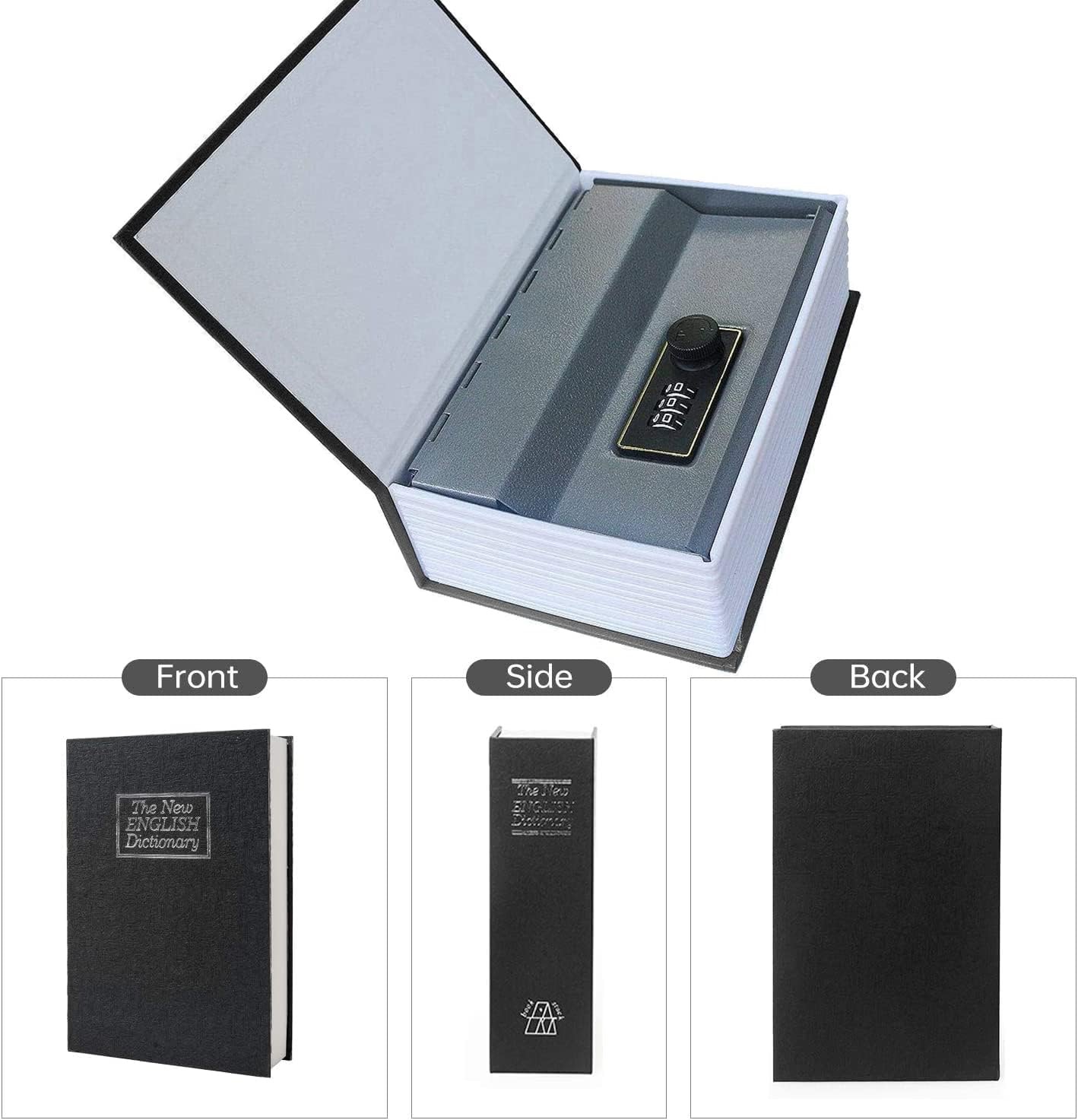 Questa cassaforte a forma di libro, abilmente camuffata, mantiene al sicuro i tuoi oggetti di valore integrandosi in modo discreto in qualsiasi libreria, risolvendo il problema di conservare contanti, documenti e gioielli senza attirare l'attenzione. Con vere pagine di carta e un robusto interno in metallo, offre sicurezza pur apparendo come un normalissimo libro con copertina rigida.