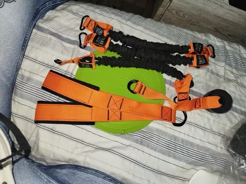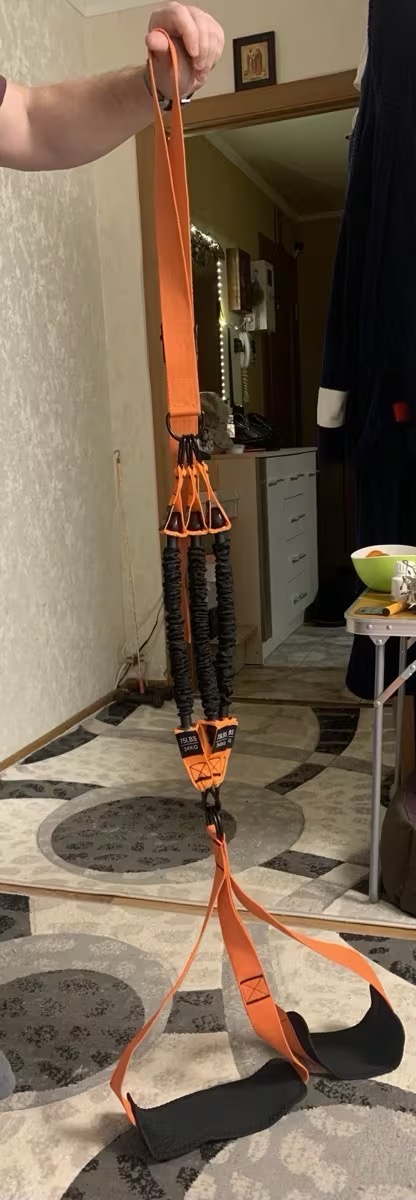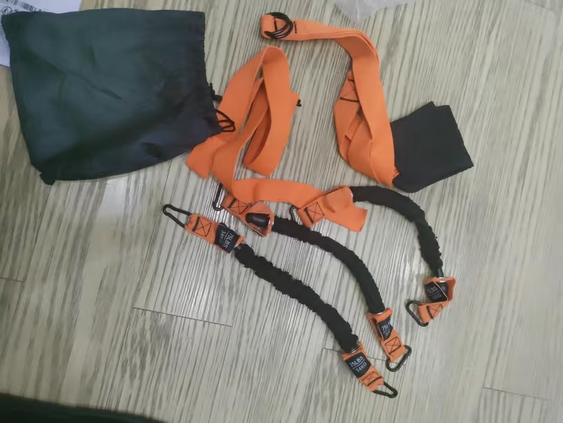 Realizzata con un robusto moschettone in acciaio e tubi in lattice protetti da una guaina tessile, la cinghia è progettata per un uso prolungato sotto carichi elevati. Gli anelli in metallo e i materiali rinforzati garantiscono affidabilità durante ogni allenamento.
