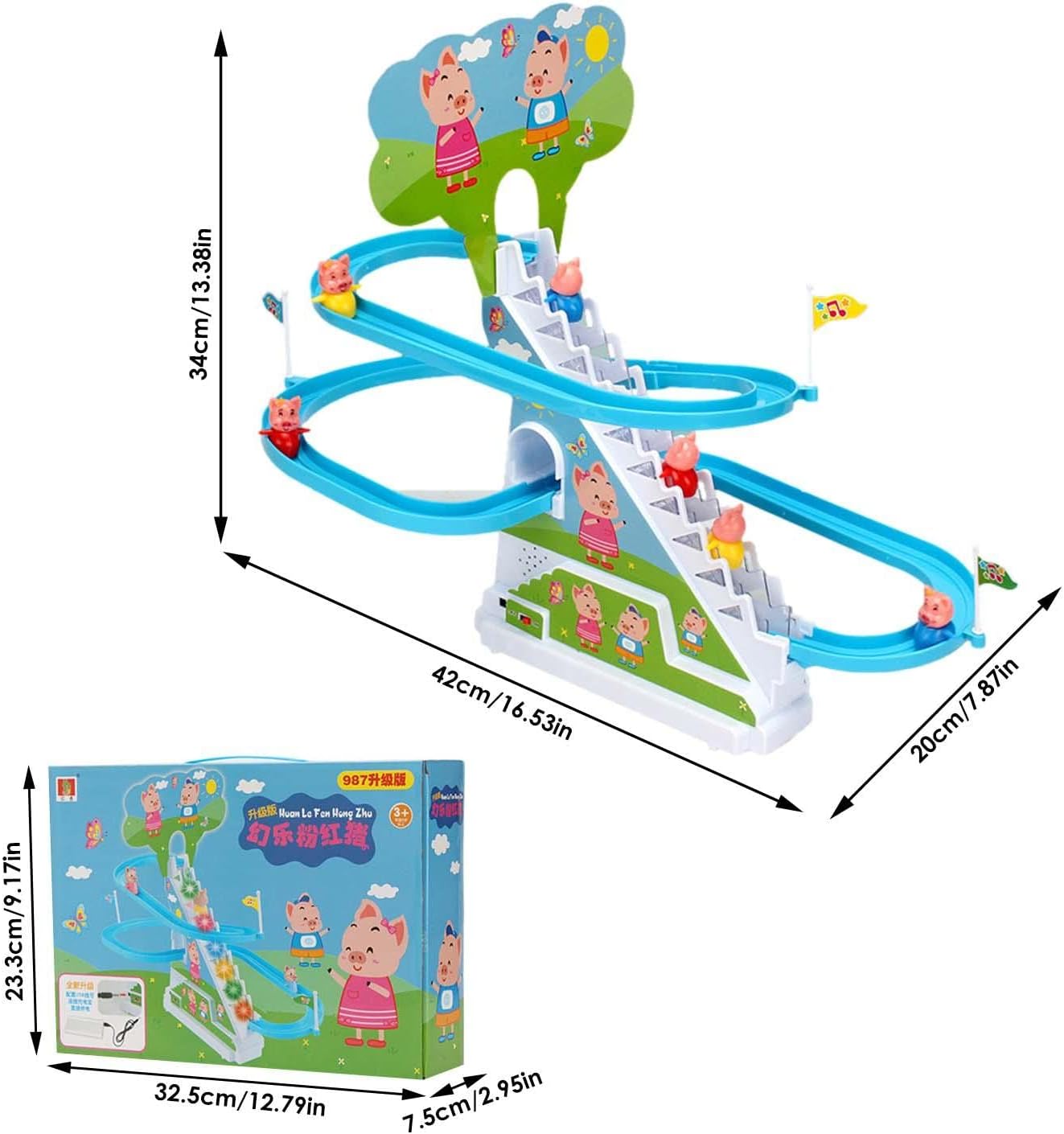 La pista musicale TOBOGAN è un giocattolo affascinante che intratterrà i bambini per ore! Mentre le piccole figurine salgono le scale e scendono con melodie allegre, i più piccoli si divertiranno a osservare i loro movimenti e le luci scintillanti. È la combinazione perfetta di suono, movimento e colore che stimola la fantasia e porta gioia.