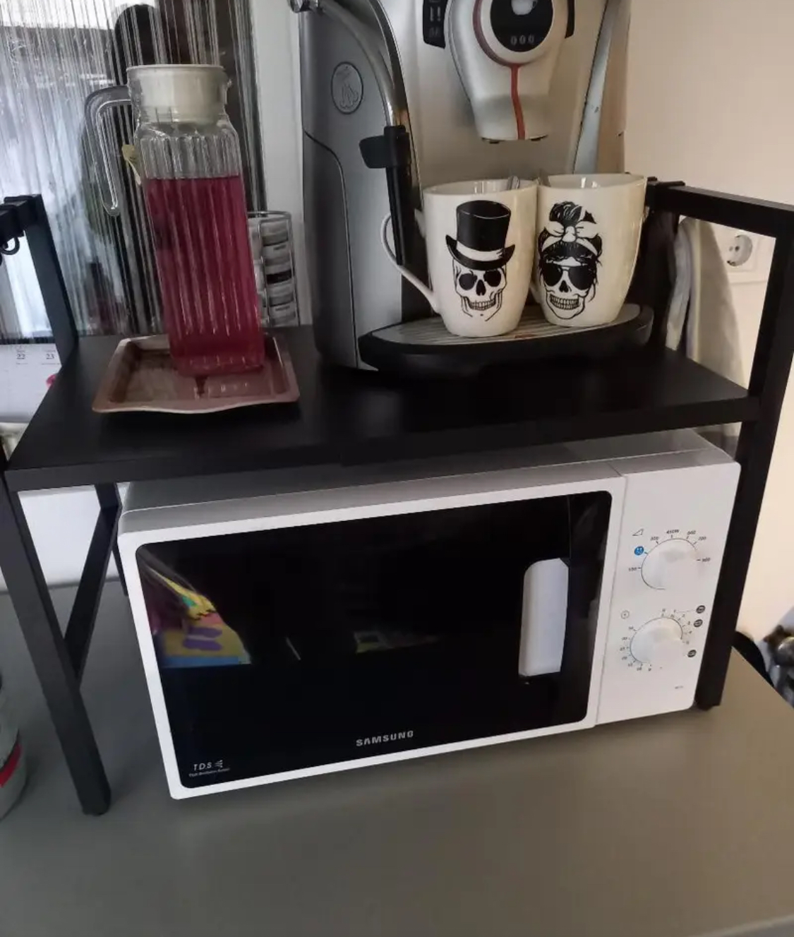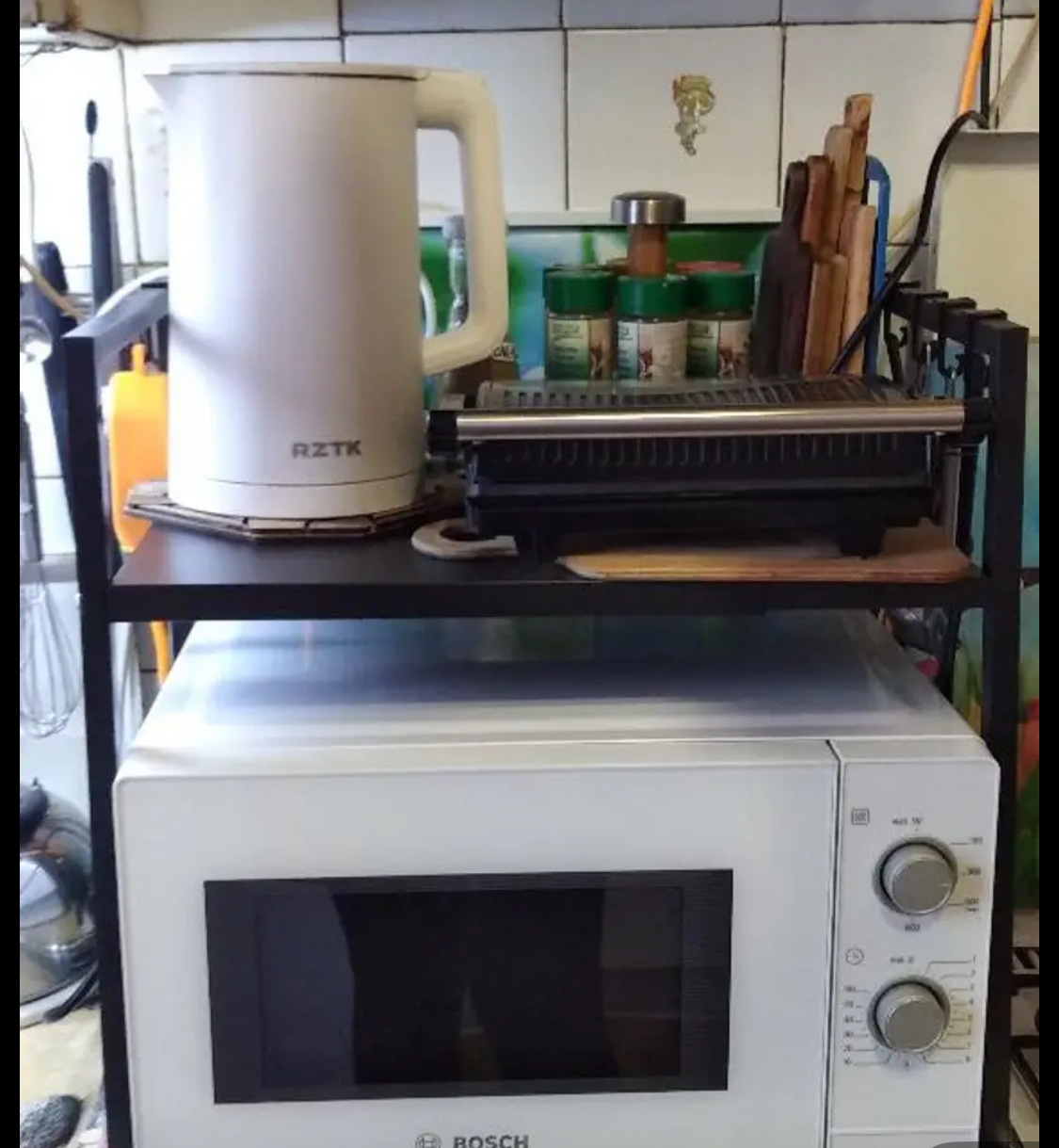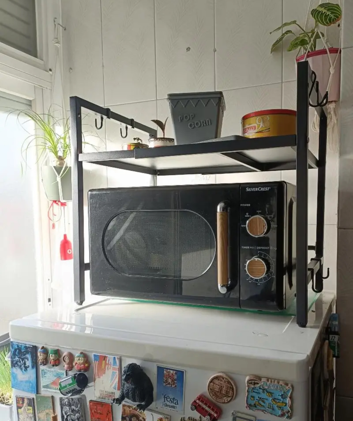 Realizzata con materiali resistenti, questa mensola supporta fino a 50 kg. Perfetta per forni a microonde, spezie, piatti e utensili da cucina.
