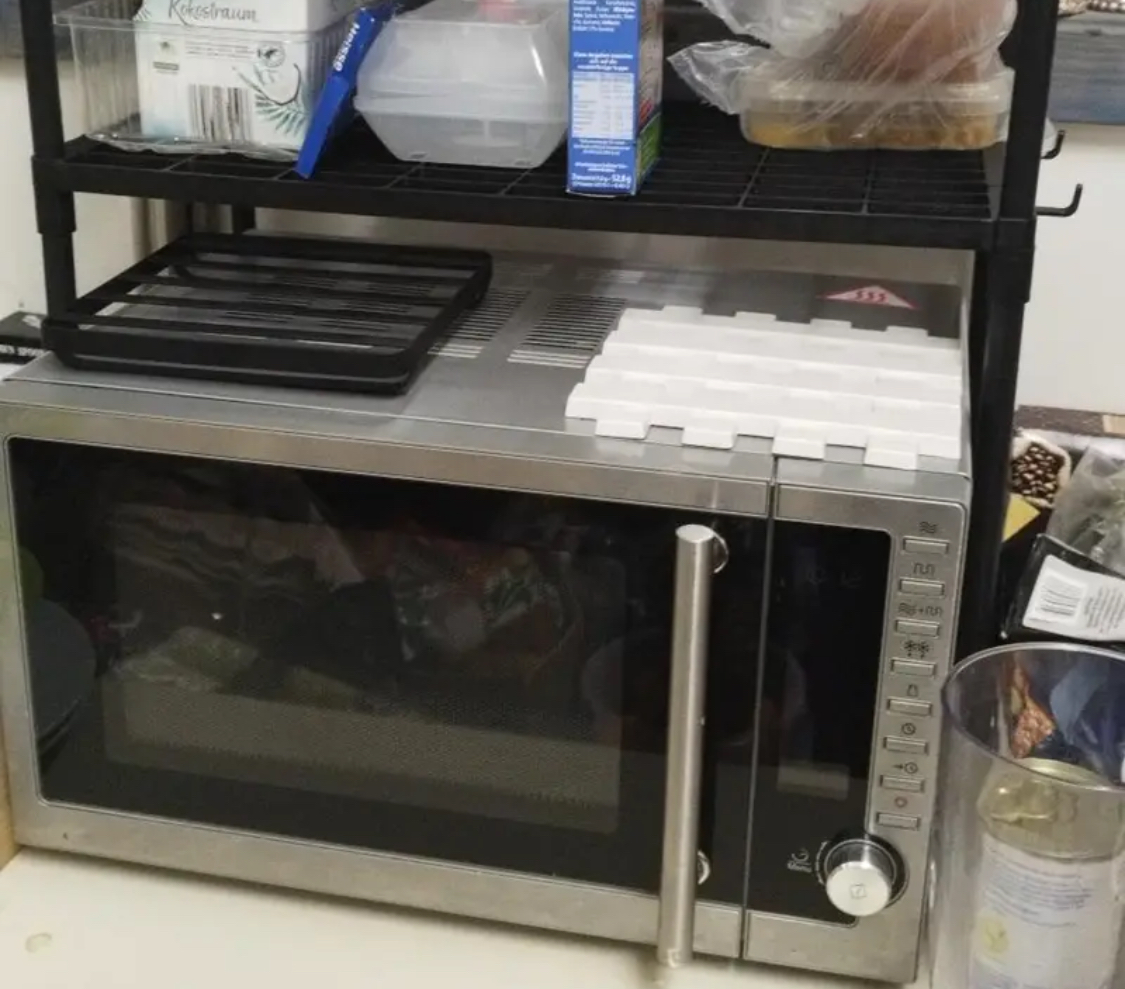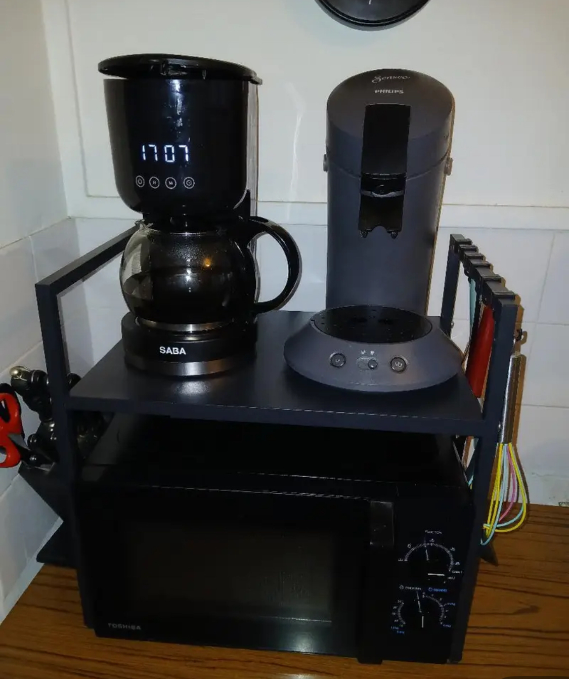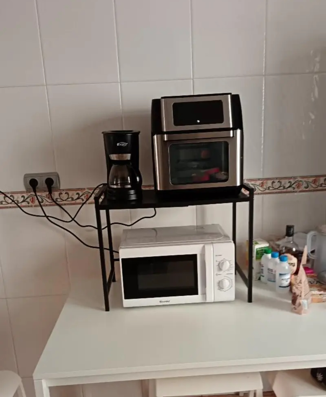 Realizzata con materiali resistenti, questa mensola supporta fino a 50 kg. Perfetta per forni a microonde, spezie, piatti e utensili da cucina.