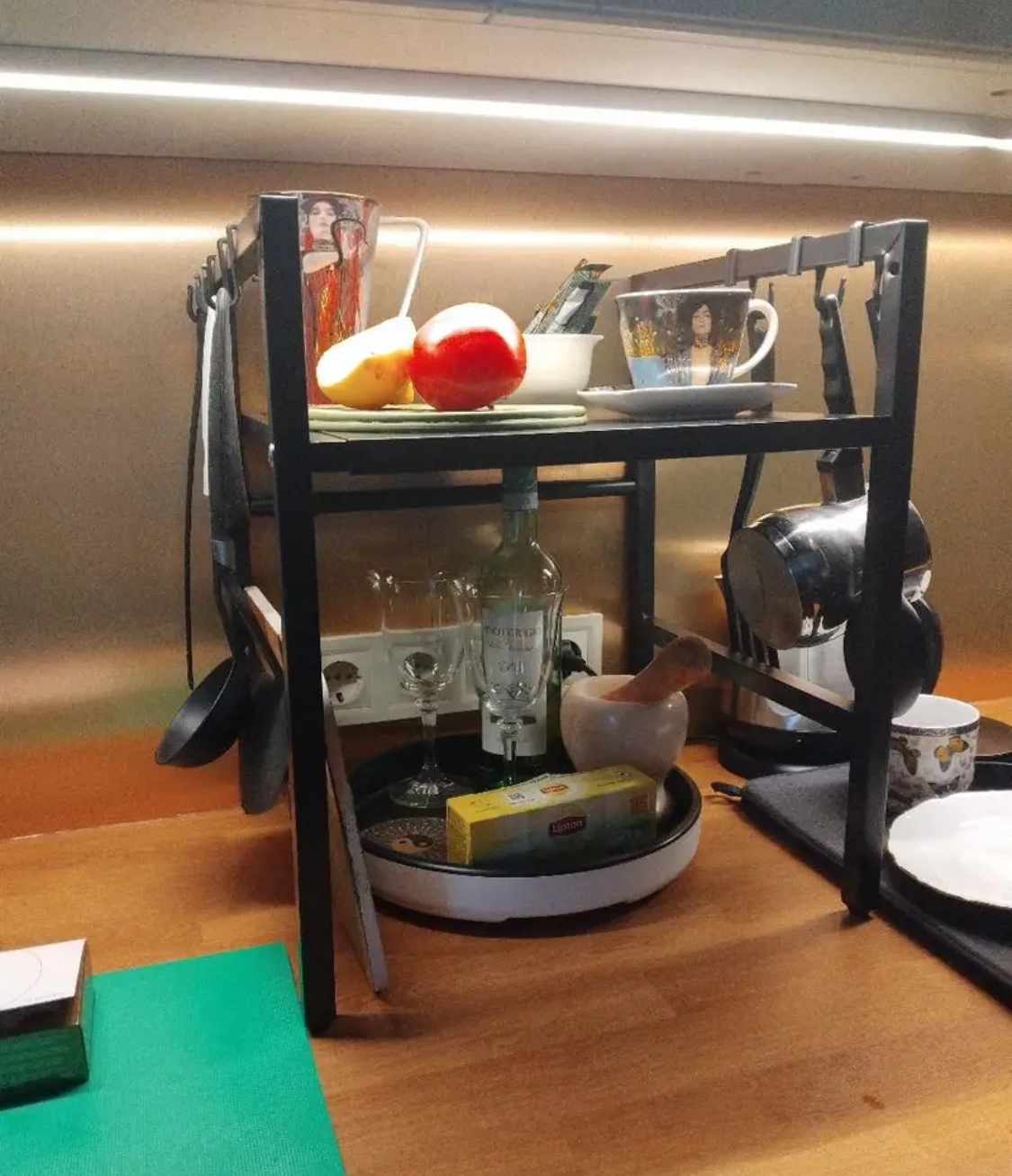 Non solo per le cucine! Usa SHELFY nel tuo guardaroba, garage, bagno o dispensa. Sono inclusi 3 ganci rimovibili per appendere accessori, asciugamani o guanti da cucina.