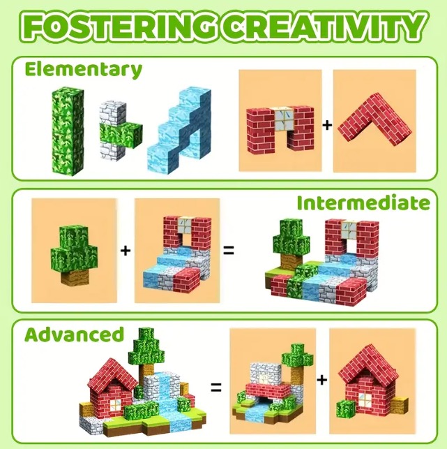 Ogni cubo contiene magneti potenti per costruzioni stabili. Da semplici torri a forme complesse, i bambini possono costruire liberamente senza frustrazione.