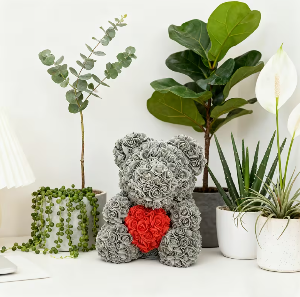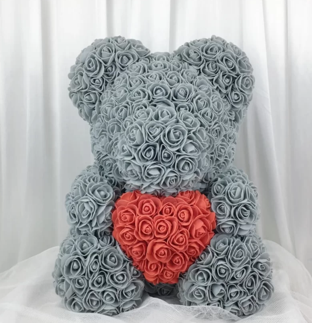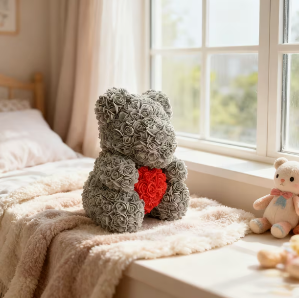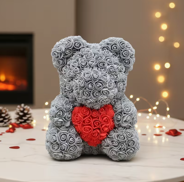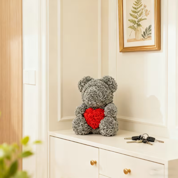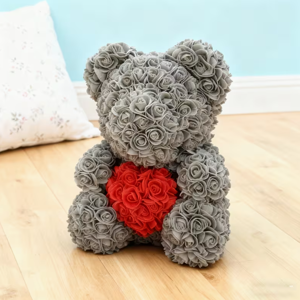 L'orsetto è realizzato a mano con rose artificiali che mantengono la loro forma e il loro colore, offrendo un effetto decorativo duraturo. È la scelta ideale per chi desidera un regalo dal valore duraturo e con una forte simbologia emotiva 🌹.