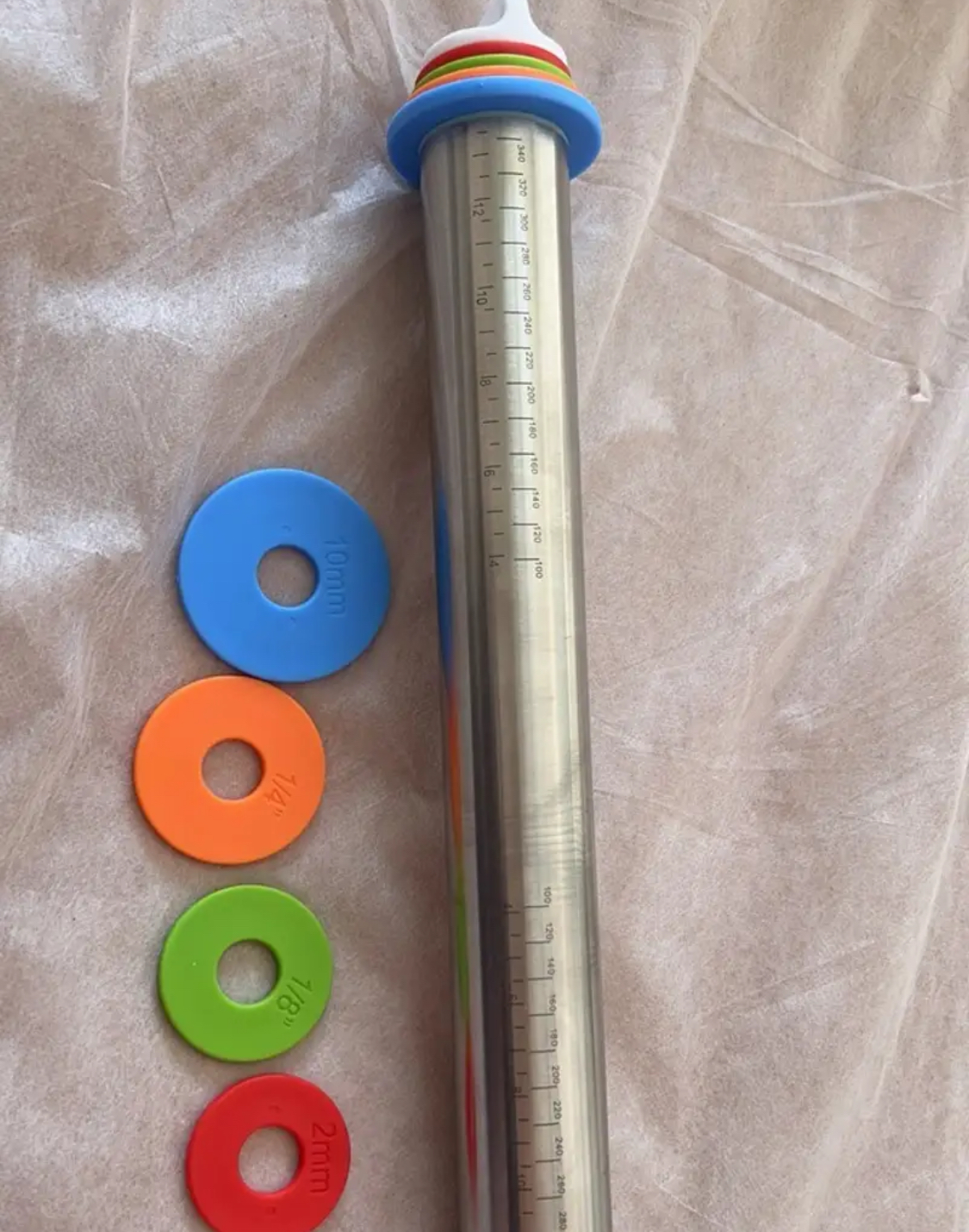 Prendi il controllo totale delle tue creazioni da forno! Il rullo è dotato di quattro set di dischi intercambiabili (2mm, 4mm, 6mm e 10mm), permettendoti di stendere l'impasto allo spessore desiderato con la massima precisione. In combinazione con le incisioni per le misurazioni, otterrai risultati sempre uniformi—qualunque cosa tu stia preparando.