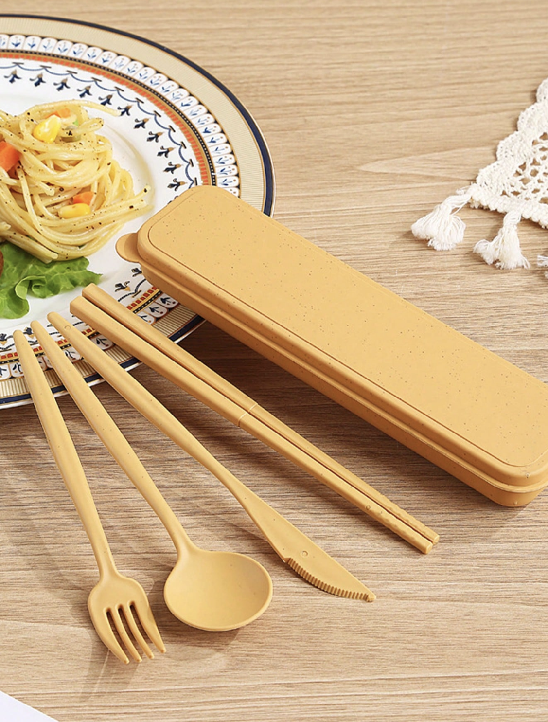 Realizzato in resistente PP ricavato da paglia di grano, questo set è un'alternativa sostenibile alla plastica monouso. Ti offre una soluzione sicura, leggera ed ecocompatibile per l'uso quotidiano.