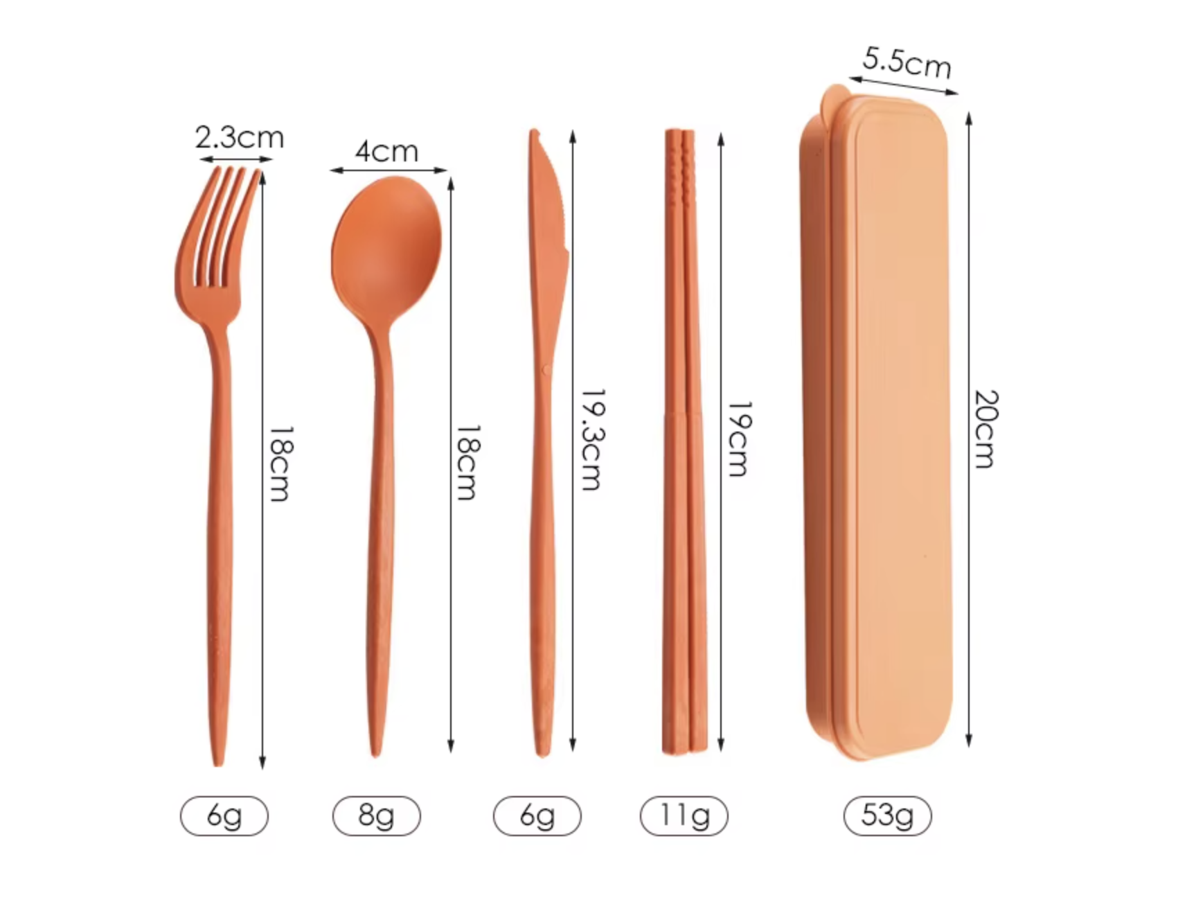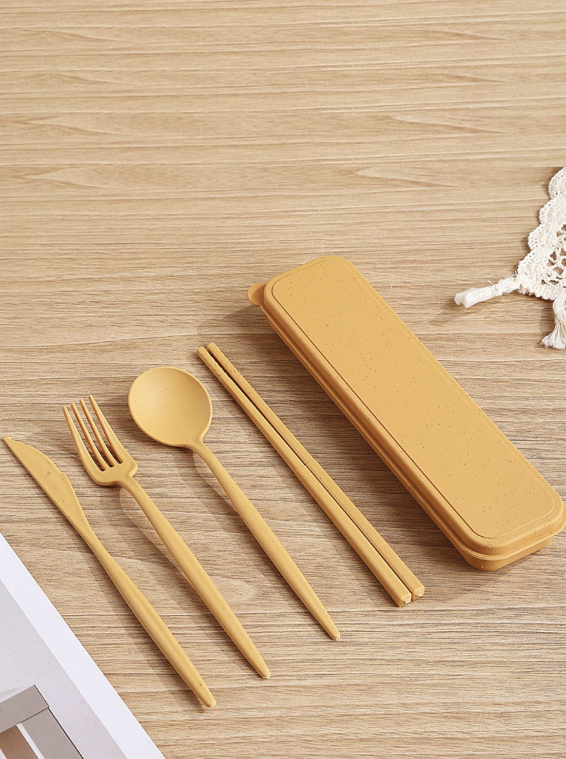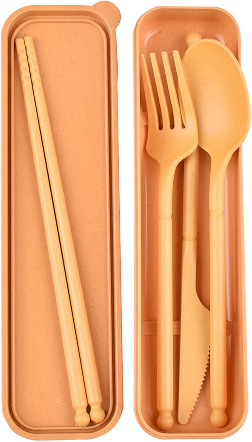 Il set include una forchetta, un cucchiaio, un coltello e delle bacchette, tutti ordinatamente racchiusi in un astuccio compatto. A lavoro, a scuola o in viaggio – le tue posate personali sono sempre con te.