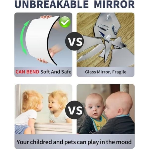 Realizzati in polistirene flessibile, questi specchi sono infrangibili e sicuri per i bambini. Anche in caso di caduta, non si rompono, rappresentando una scelta affidabile per famiglie e proprietari di animali domestici.